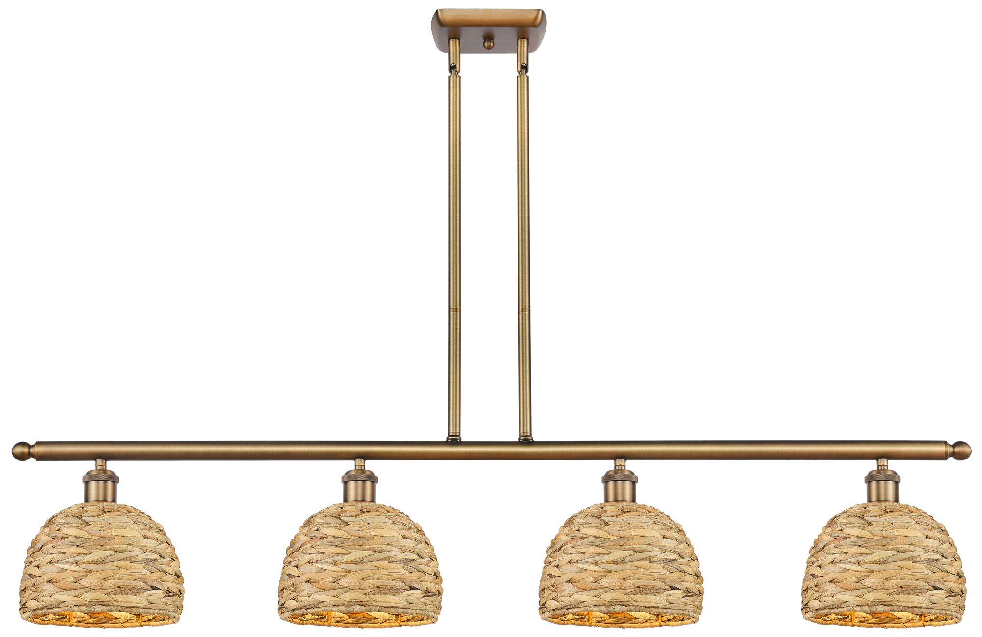 Woven Rattan 48"W 4 Light Brushed Brass Stem Island Light w/ Natural S