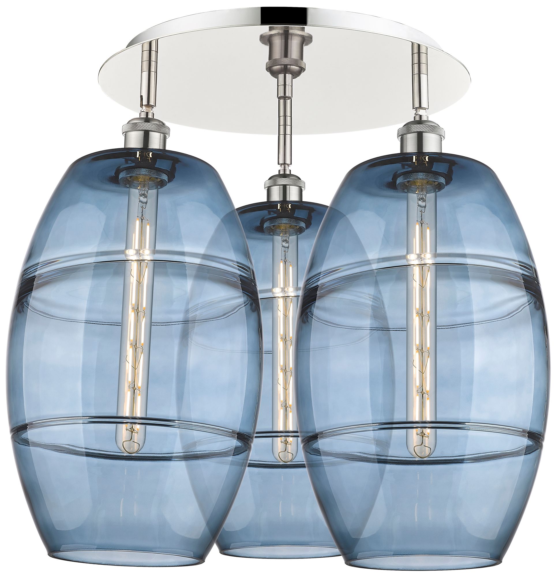 Ballston Vaz 21.75"W 3-Light Polished Nickel Flush Mount w/ Blue Shade