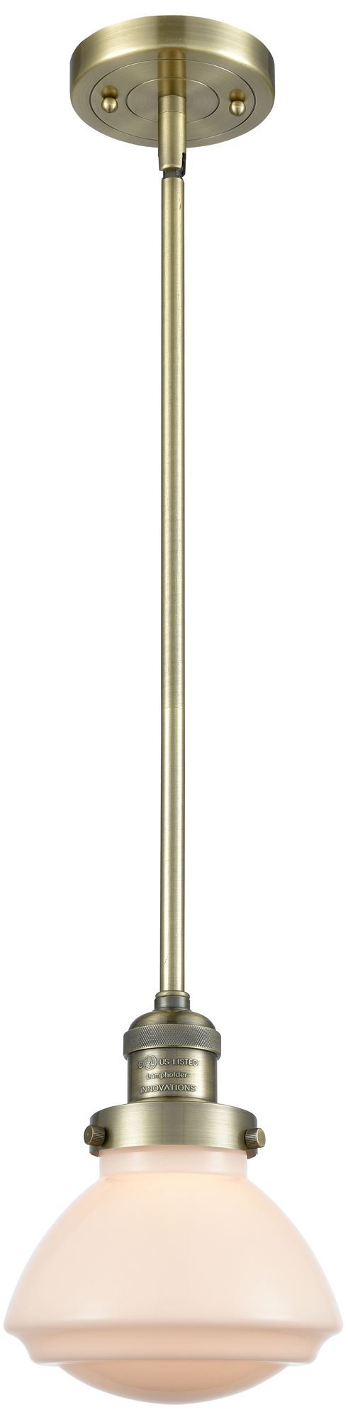 Franklin Olean 6.75"W Antique Brass Stem Hung Mini Pendant w/ White Sh