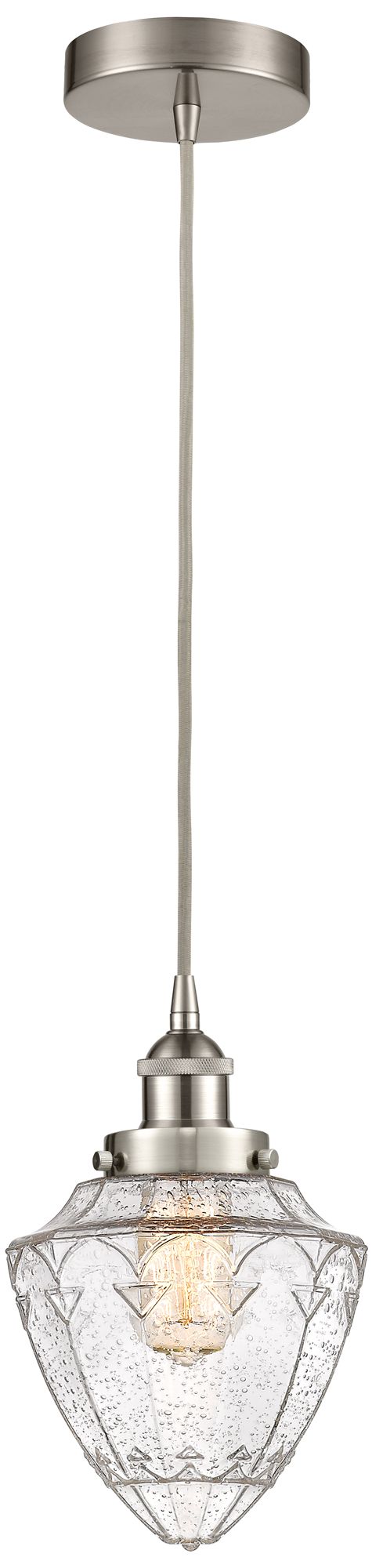 Bullet 7" Brushed Satin Nickel Cord Hung Mini Pendant w/ Seedy Shade
