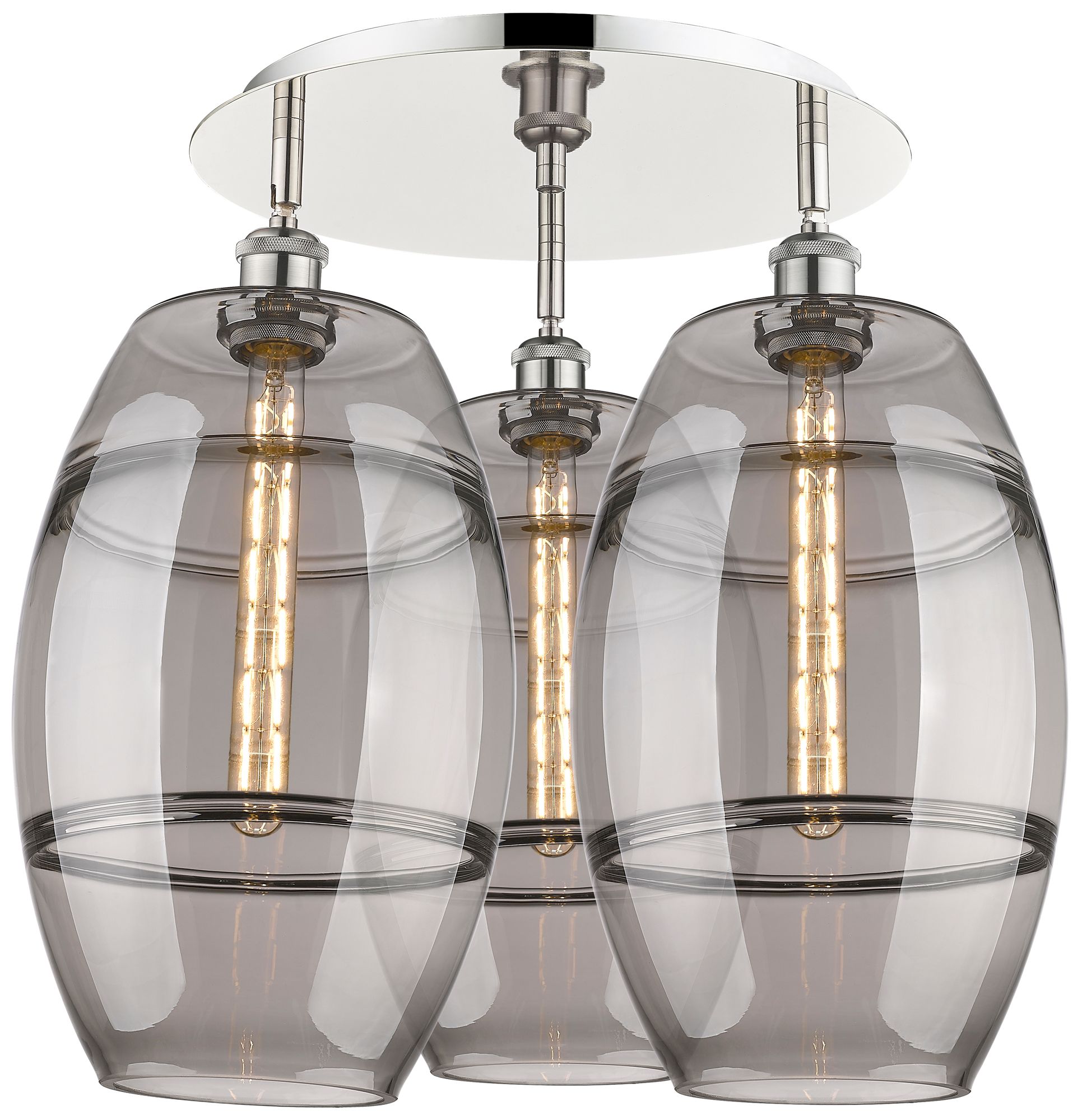 Ballston Vaz 21.75"W 3-Light Polished Nickel Flush Mount w/ Smoke Shad