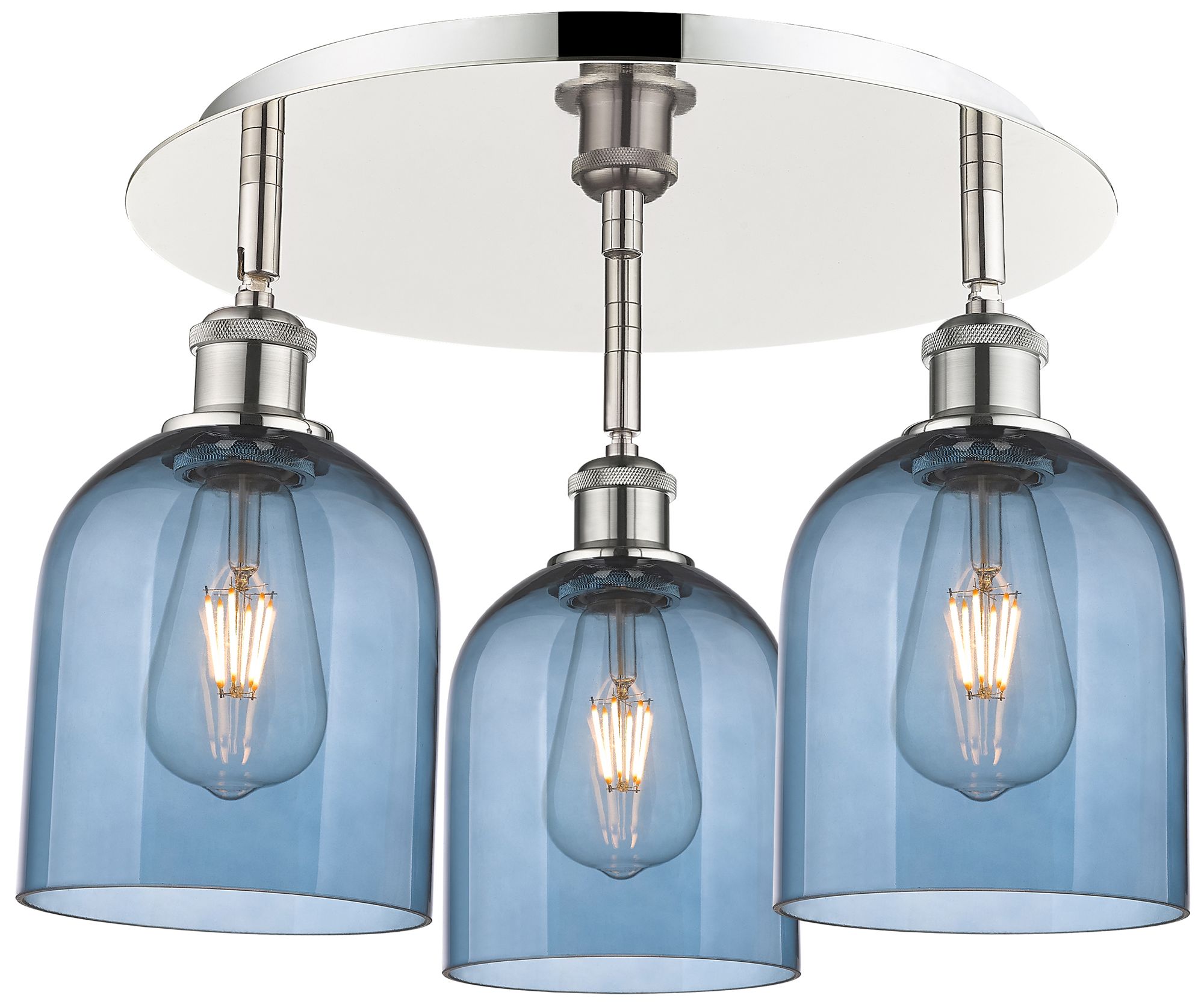 Ballston Bella 17.25"W 3-Light Polished Nickel Flush Mount w/ Blue Sha