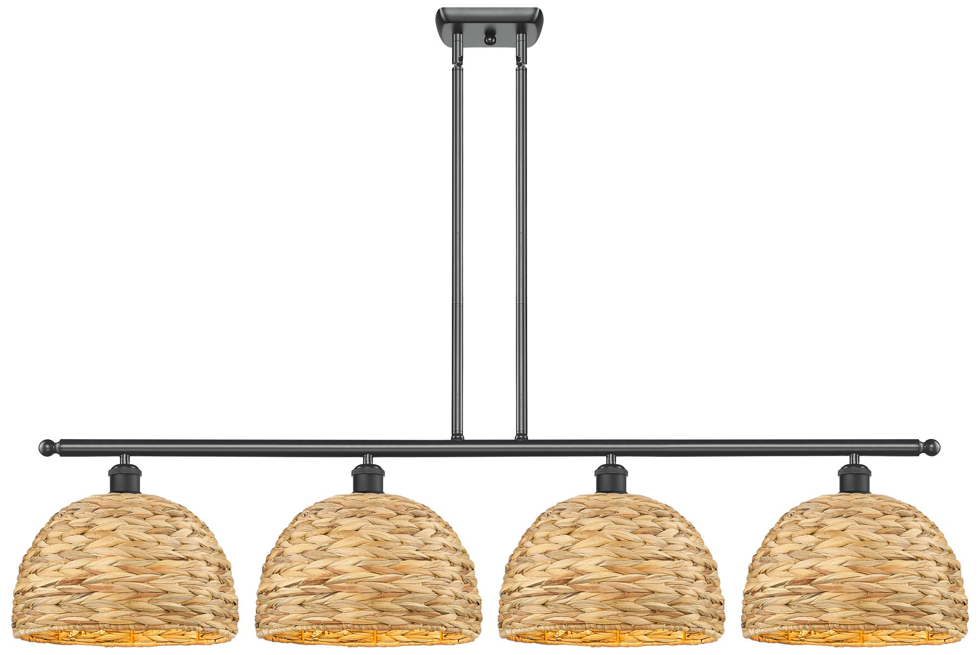 Woven Rattan 50"W 4 Light Matte Black Stem Island Light w/ Natural Sha