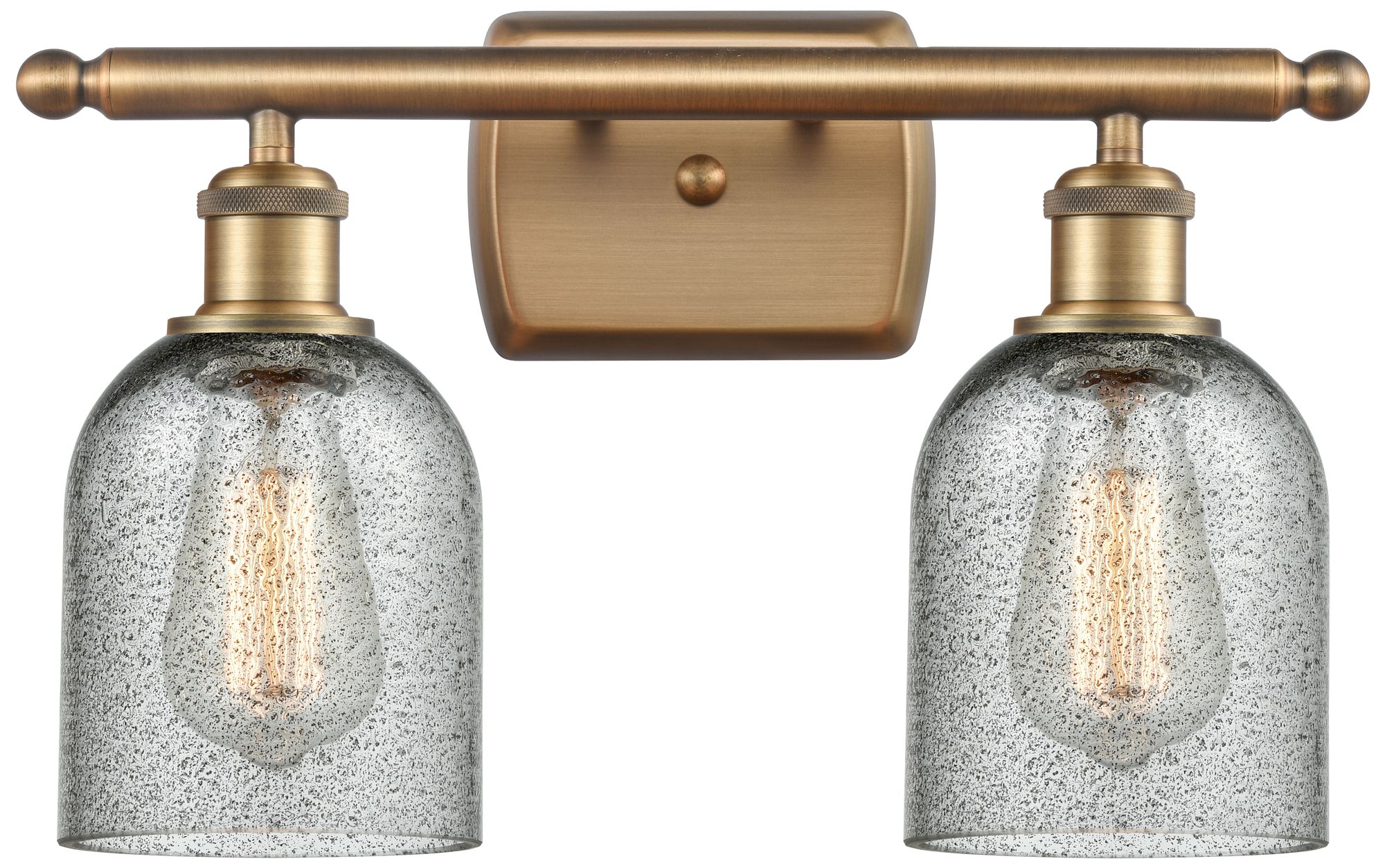 Caledonia 16" 2-Light Brushed Brass Bath Light w/ Charcoal Shade