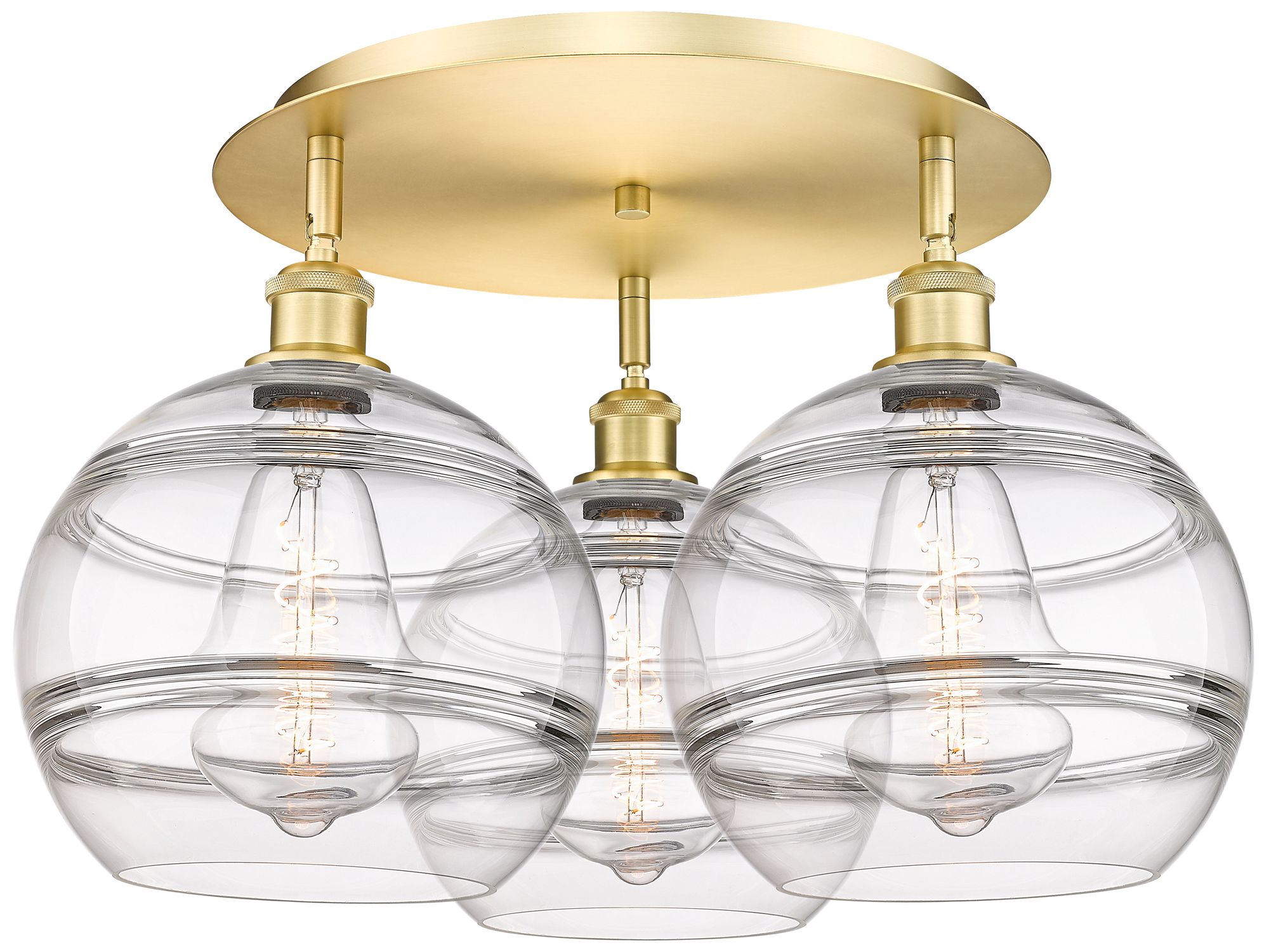 Ballston Rochester 21.75"W 3-Light Satin Gold Flush Mount w/ Clear Sha