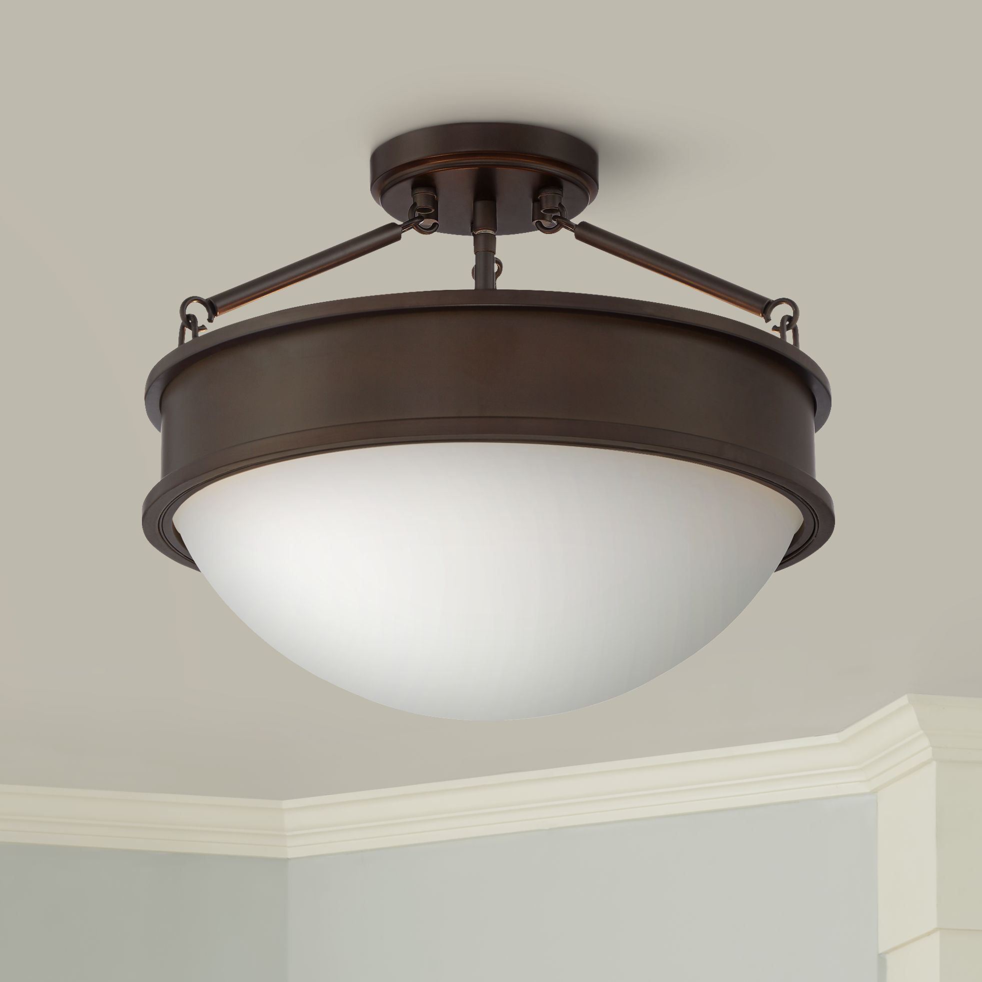 Rory 16" Wide Bronze and Opal Glass Bowl Ceiling Light