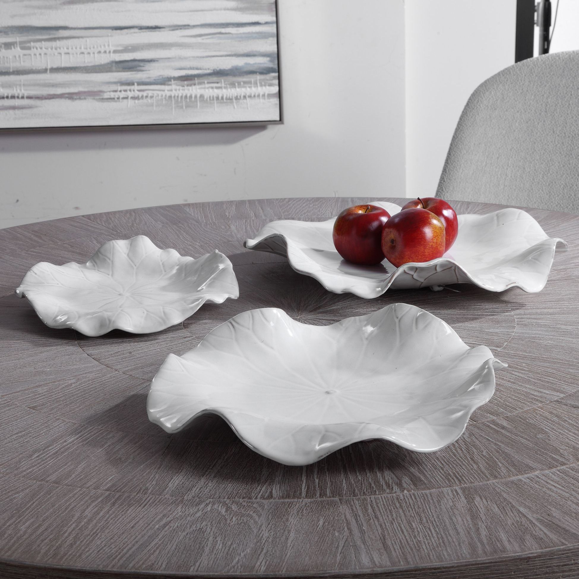 Abella 18"W White 3-Piece Flower Ceramic Wall Art Set