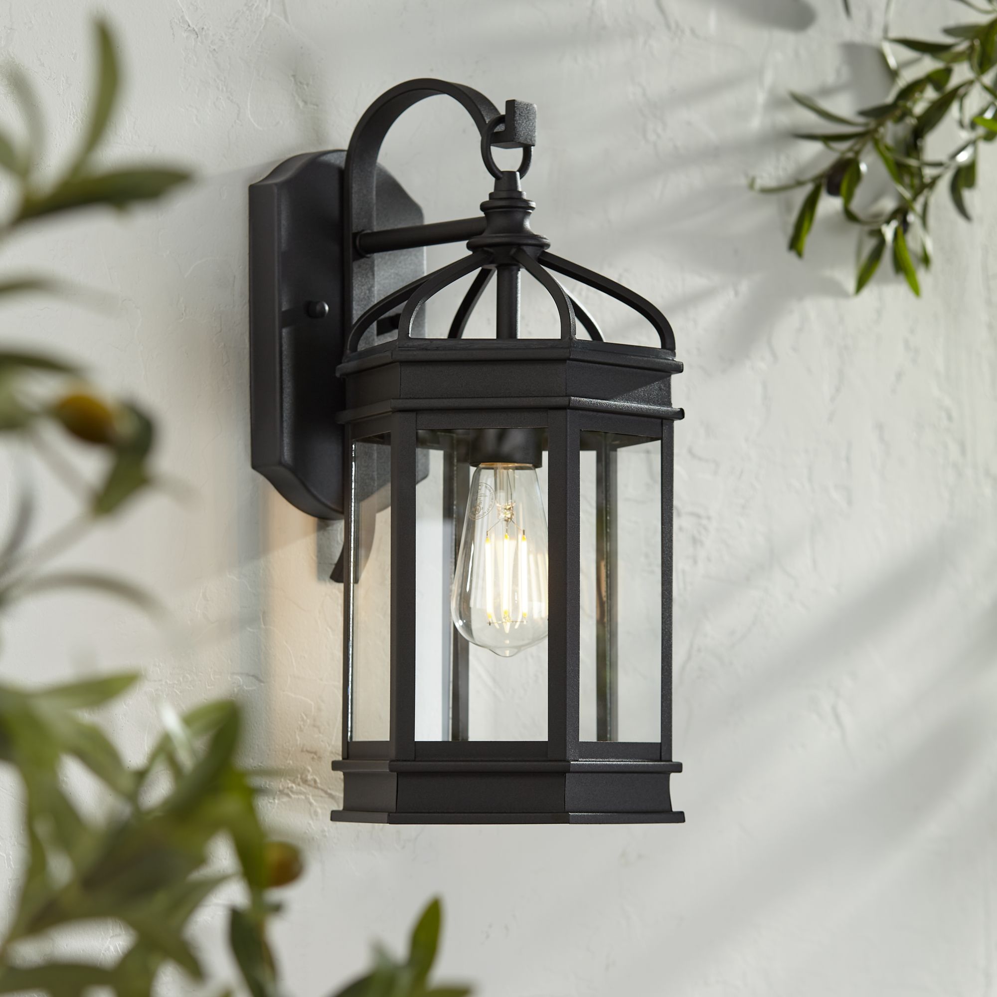 Nelli 15 3/4"H Textured Black Lantern Outdoor Wall Light