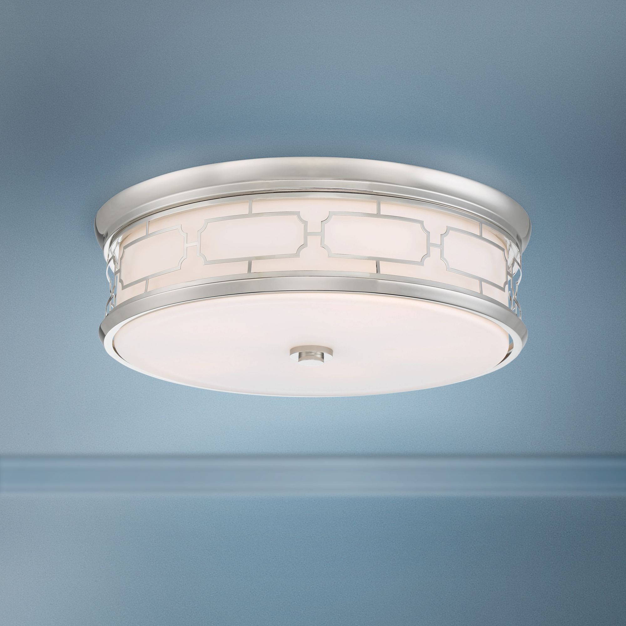Minka Drum Flush Mount 20" Modern Deco Nickel LED Ceiling Light