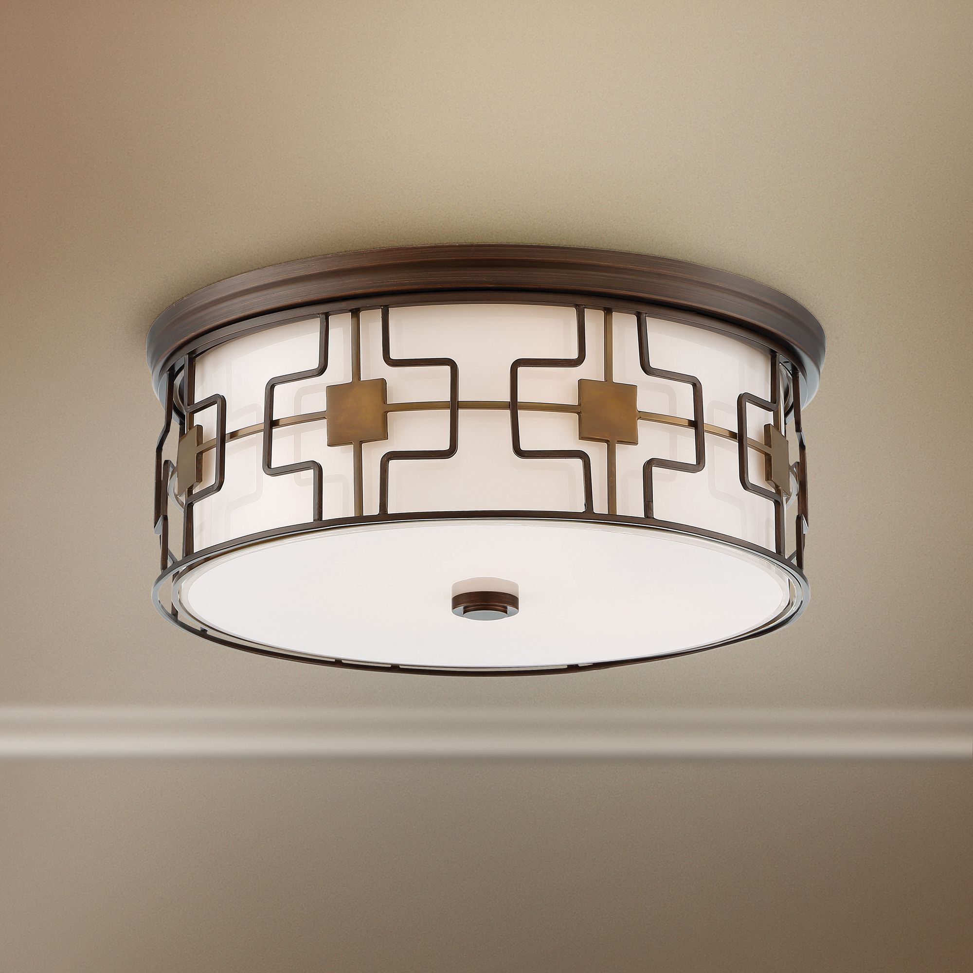 Flush Mount 16"W Dark Brushed Bronze Drum LED Ceiling Light