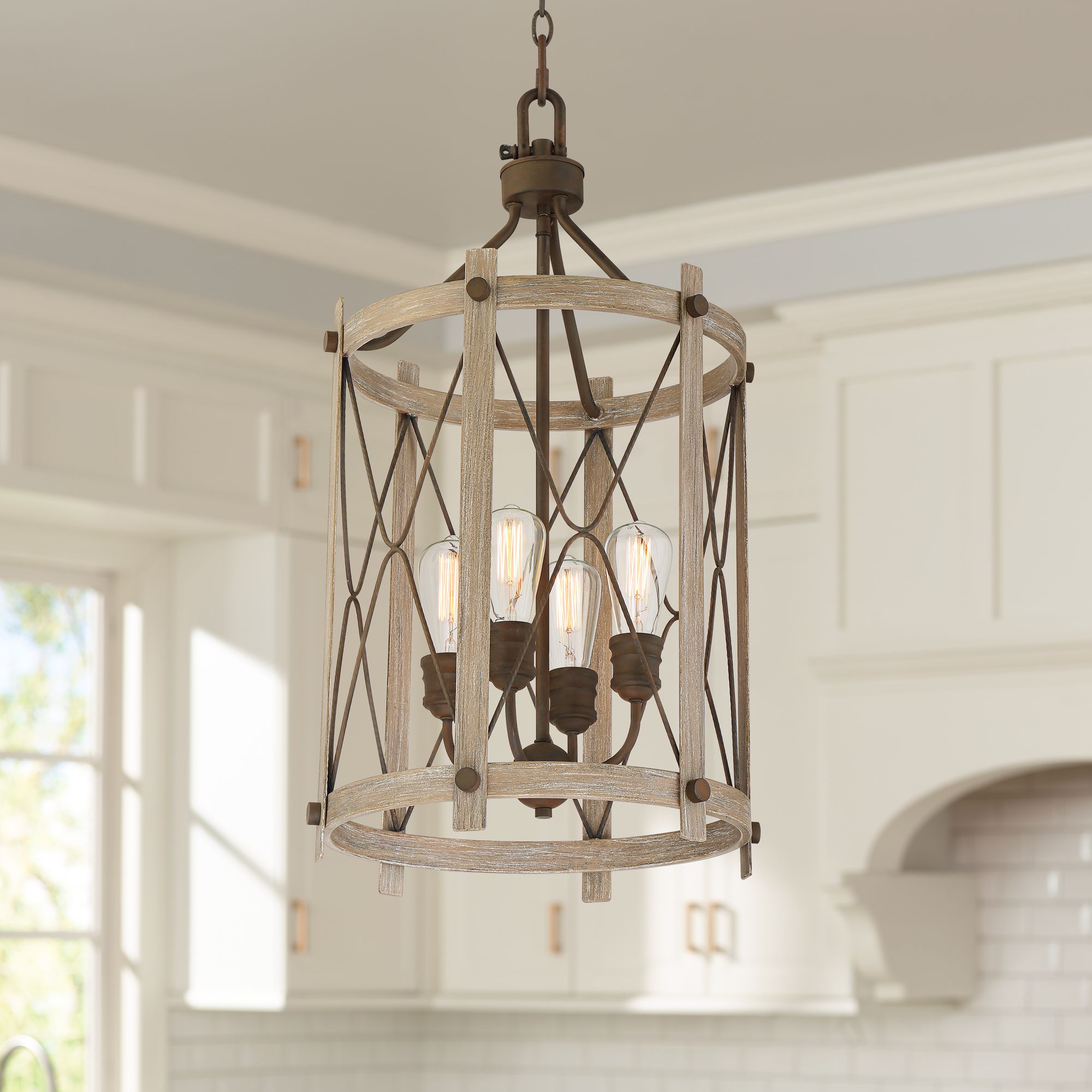 Daryl 16 1/2" Wide Bronze and Wood Entry Pendant Light