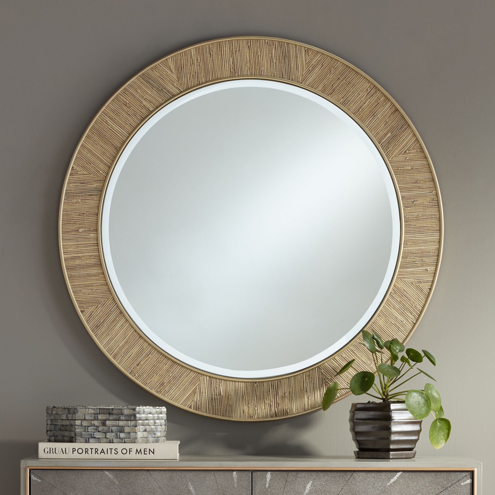 Malina 35" Round Natural Grass Weave Wall Mirror