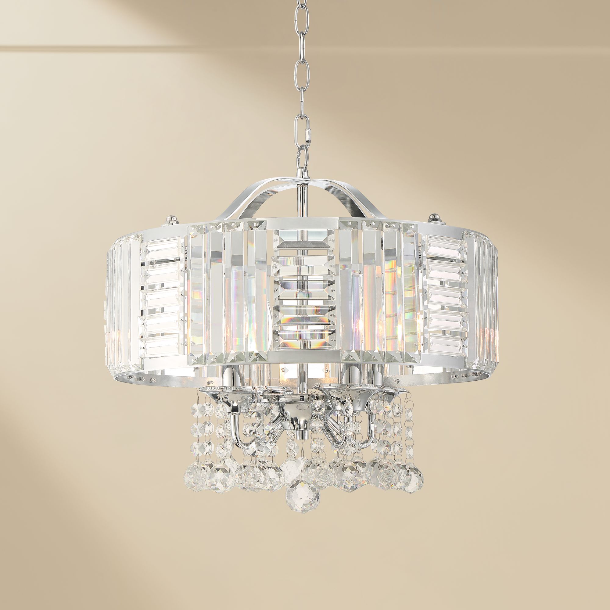 Halsey 18" Wide Chrome and Crystal Drum Pendant Light