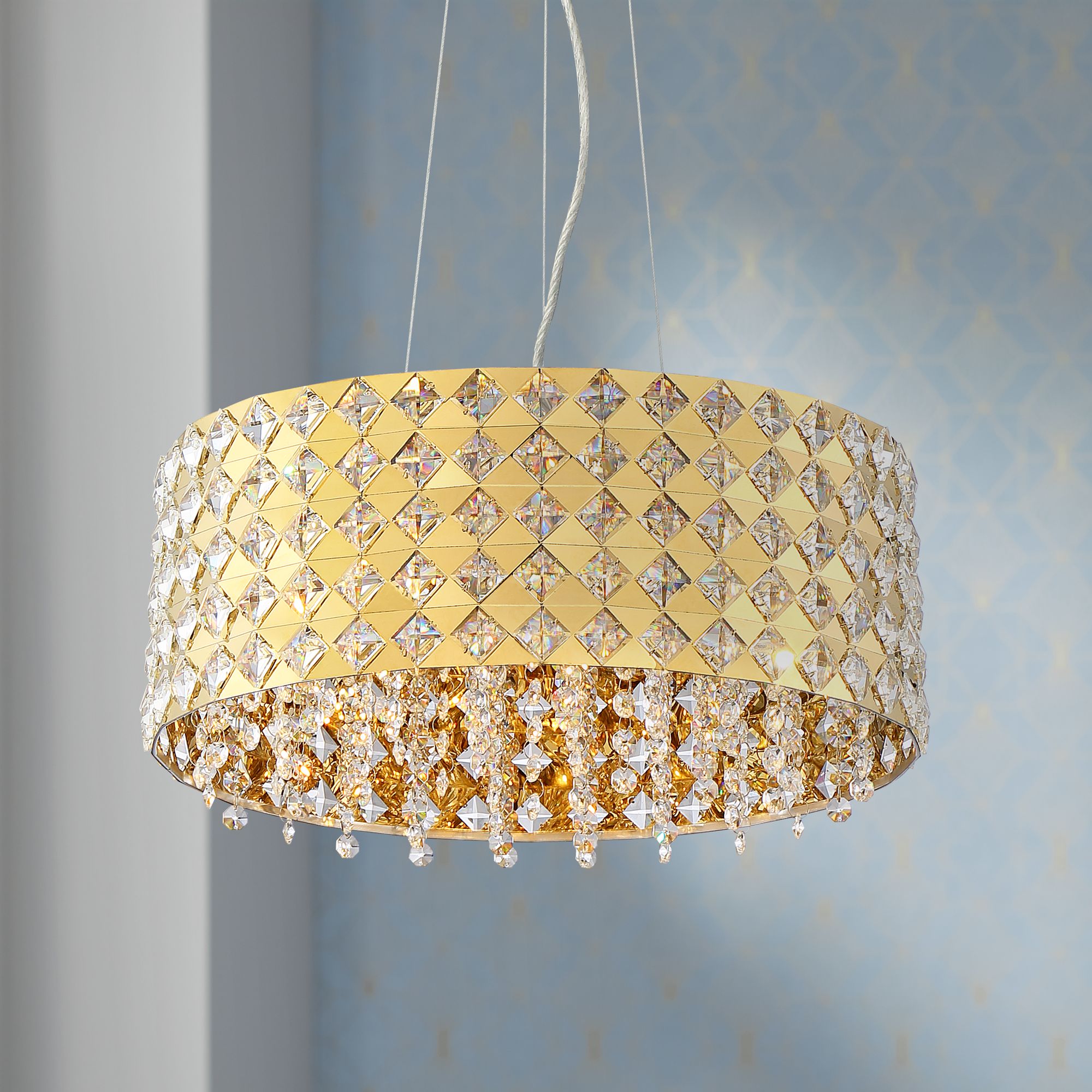 Michel 17" Wide Gold and Crystal Drum Pendant Light
