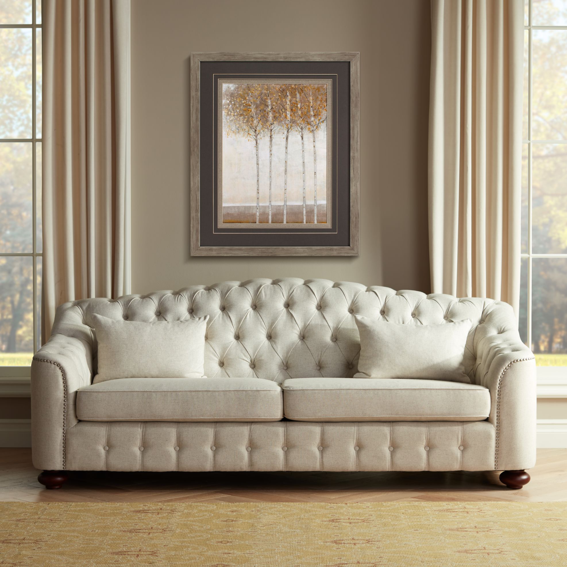 Velare 87 1/2" Wide Oatmeal Tufted Sofa