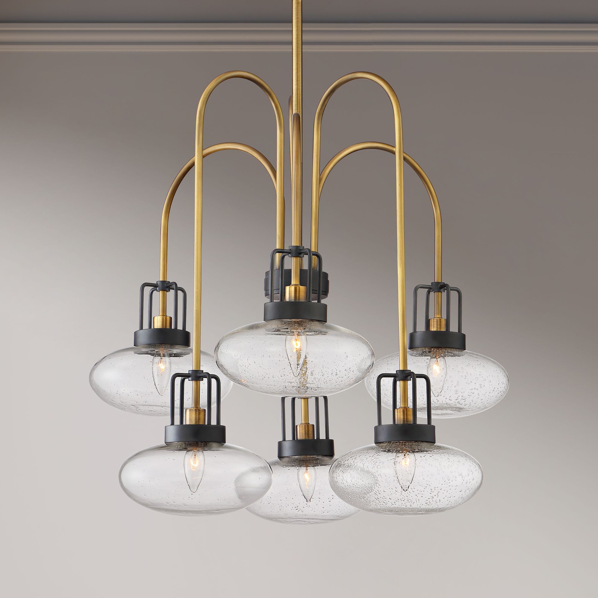 Possini Euro Longo 26" Wide Brass and Black 6-Light Modern Chandelier