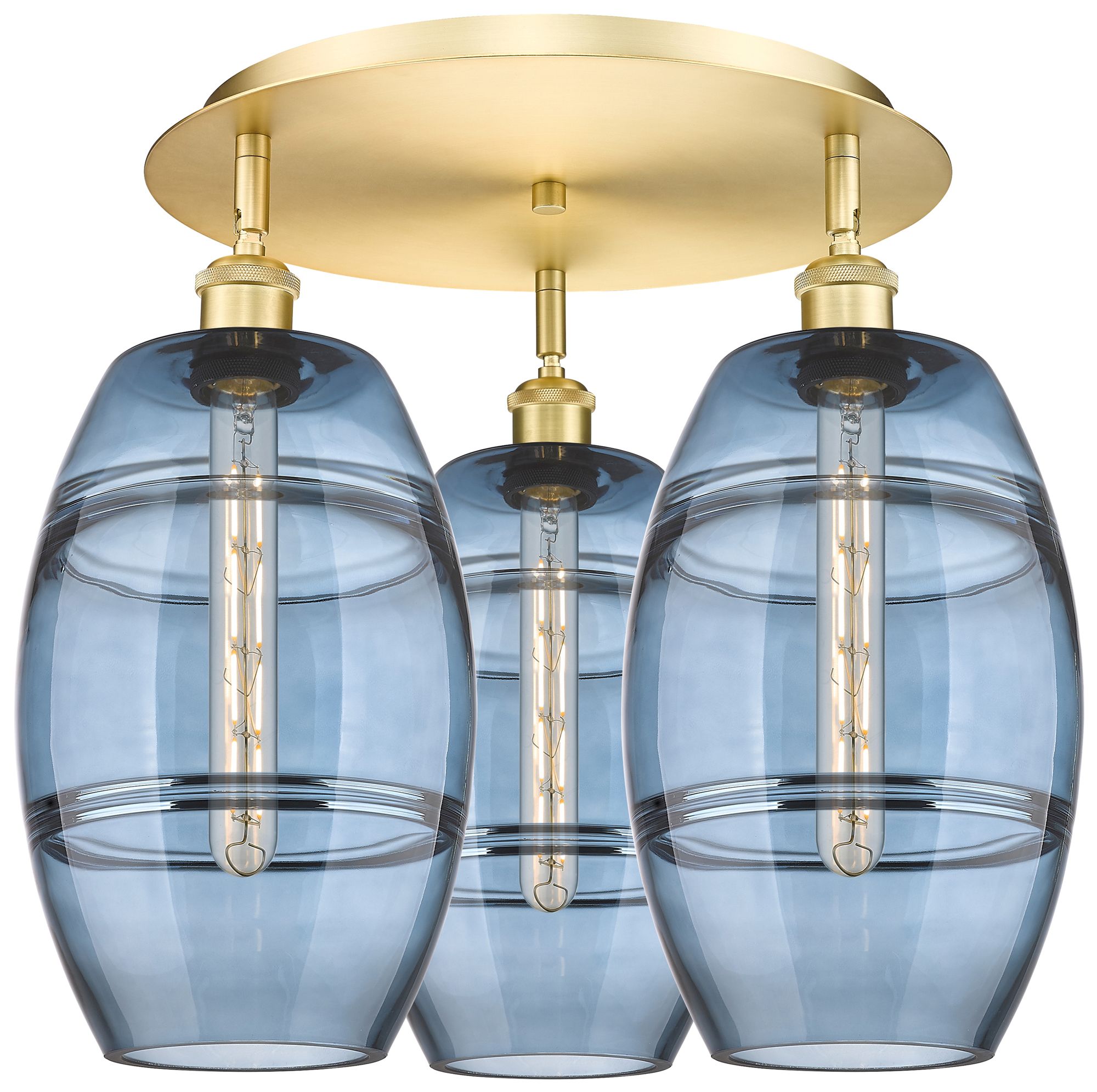 Ballston Vaz 19.75"W 3-Light Satin Gold Flush Mount w/ Princess Blue S