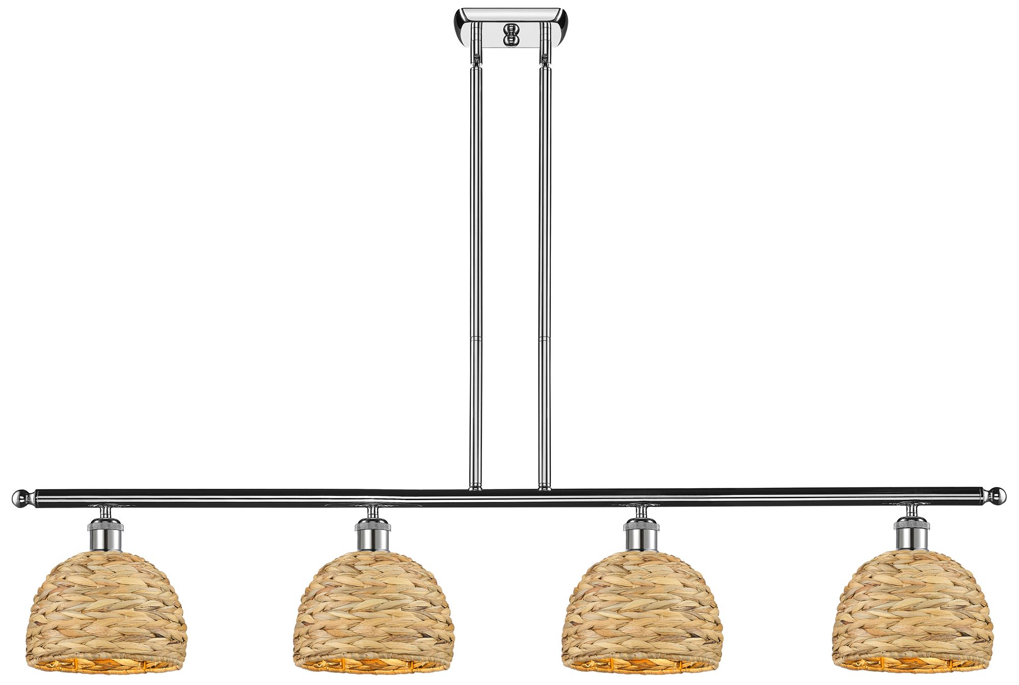 Woven Rattan 48"W 4 Light Chrome Stem Island Light w/ Natural Shade