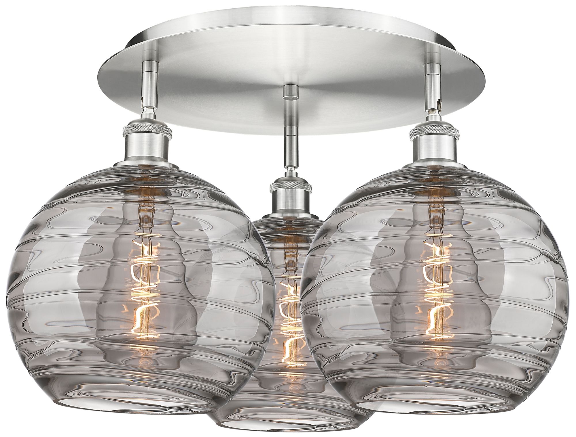 Ballston Athens 22"W 3-Light Satin Nickel Flush Mount w/ Smoke Swirl S