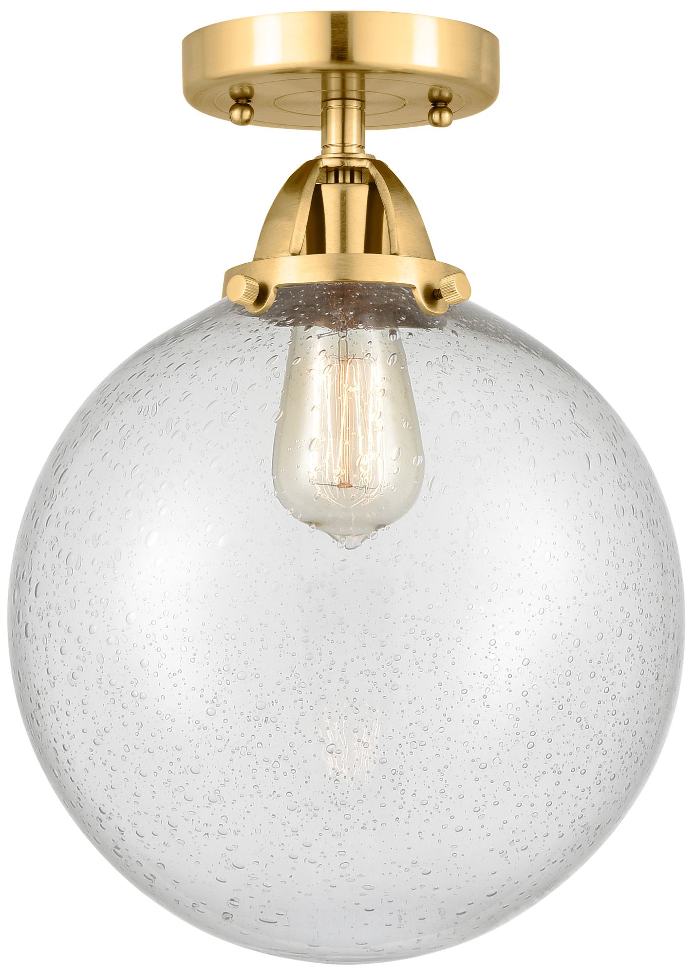 Nouveau 2 Beacon 10" Semi-Flush Mount - Satin Gold - Seedy Shade