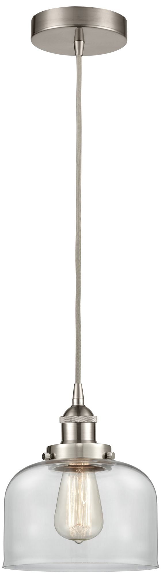 Bell 8" Brushed Satin Nickel Mini Pendant w/ Clear Shade