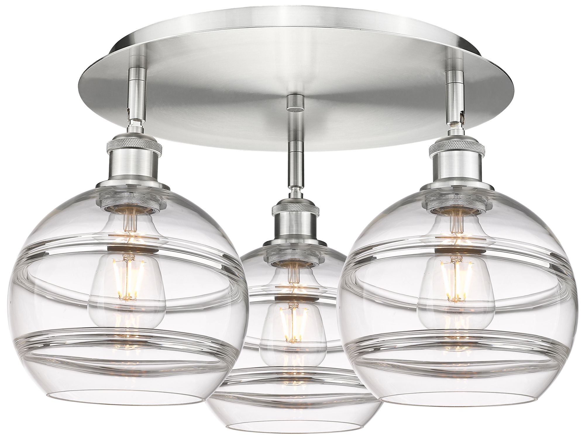 Ballston Rochester 19.75"W 3-Light Satin Nickel Flush Mount w/ Clear S