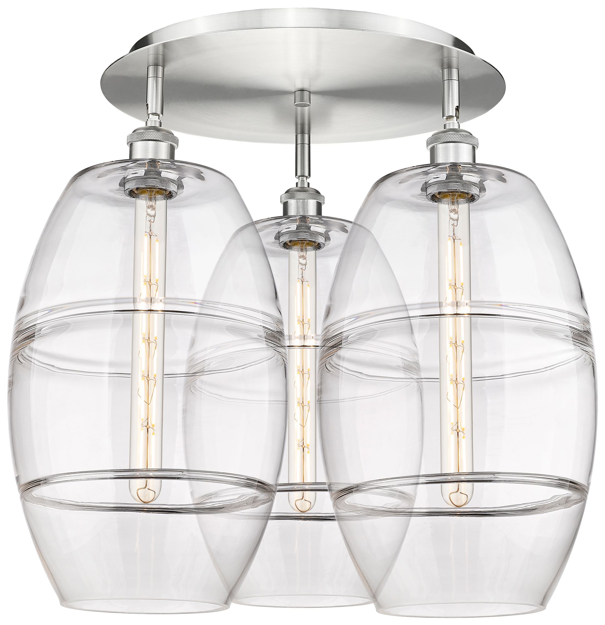 Ballston Vaz 21.75" Wide 3-Light Satin Nickel Flush Mount With Clear S