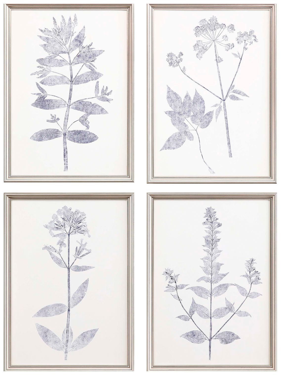 Navy Botanicals 15"W x 21"H Framed Art Set of 4