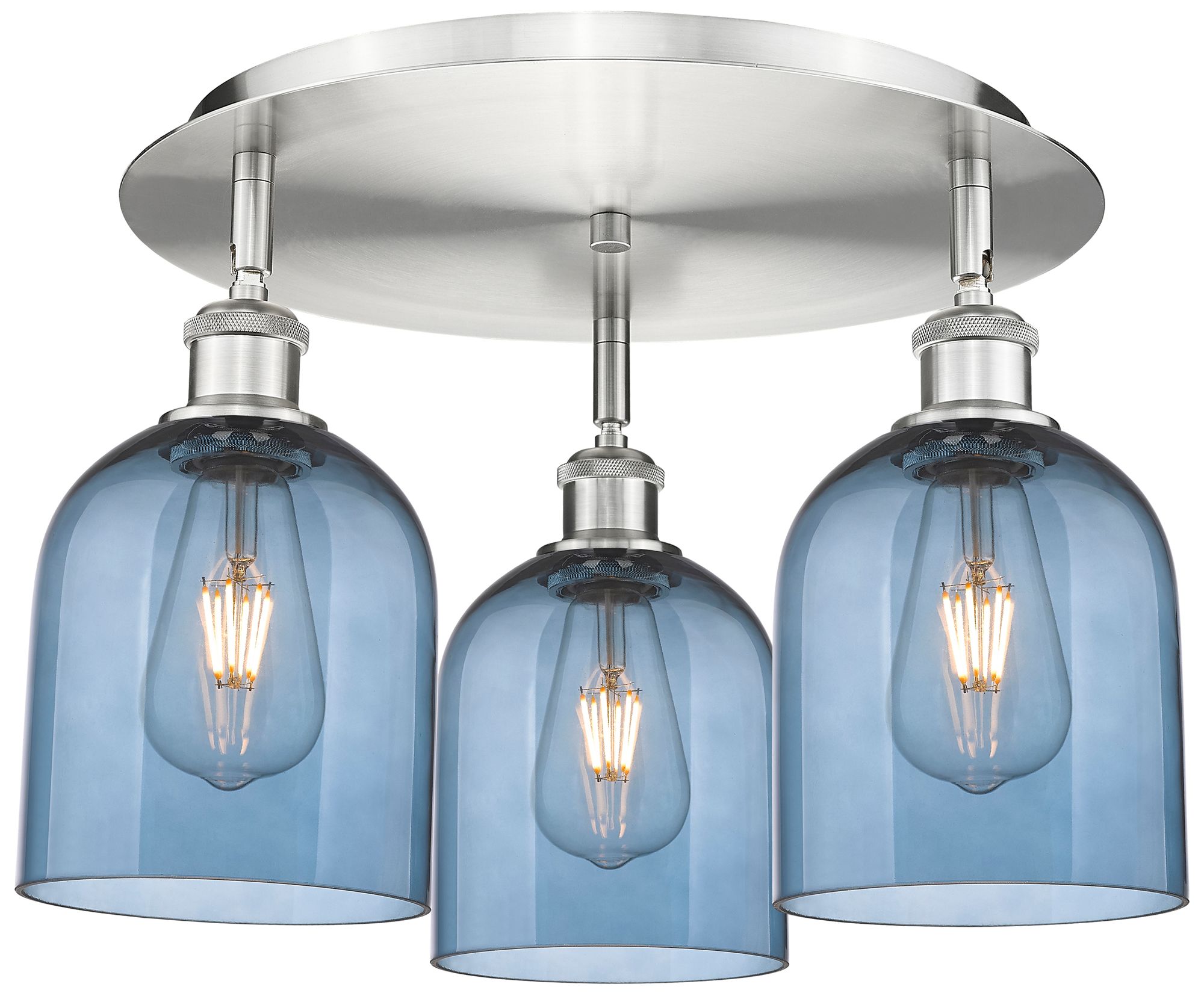 Ballston Bella 17.25"W 3-Light Satin Nickel Flush Mount w/ Blue Shade