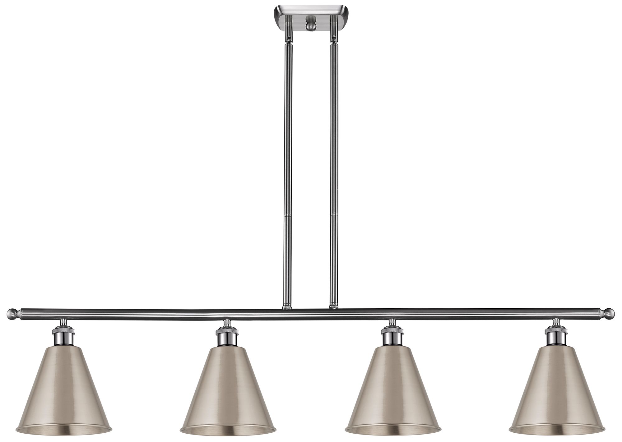 Ballston Cone 48"W 4 Light Brushed Satin Nickel Stem Island Light