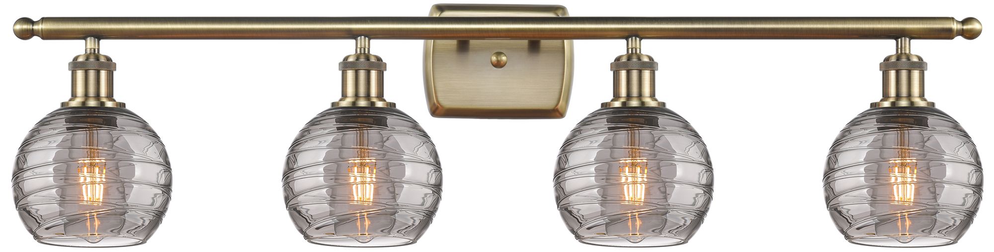 Athens 35.88"W 4-Light Antique Brass Bath Light w/ Smoke Swirl Shade