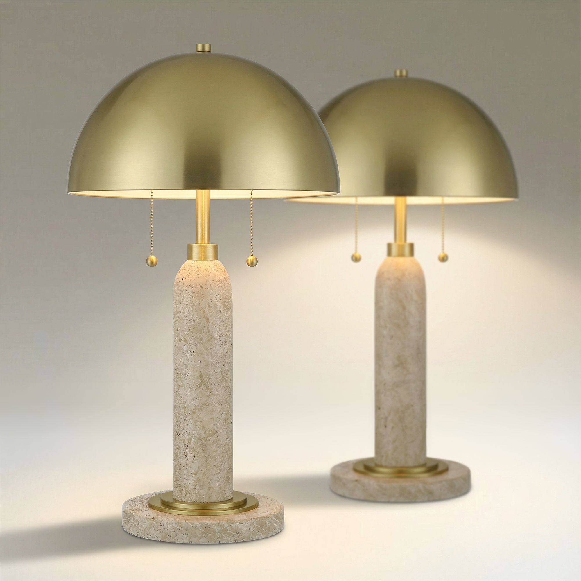 Possini Euro Chanterelle 24 1/2" Faux Stone Dome Table Lamp Set of 2