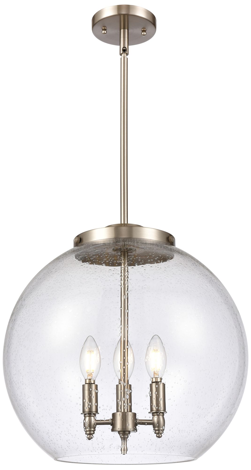 Athens 16" 3-Light Brushed Satin Nickel Pendant w/ Seedy Shade