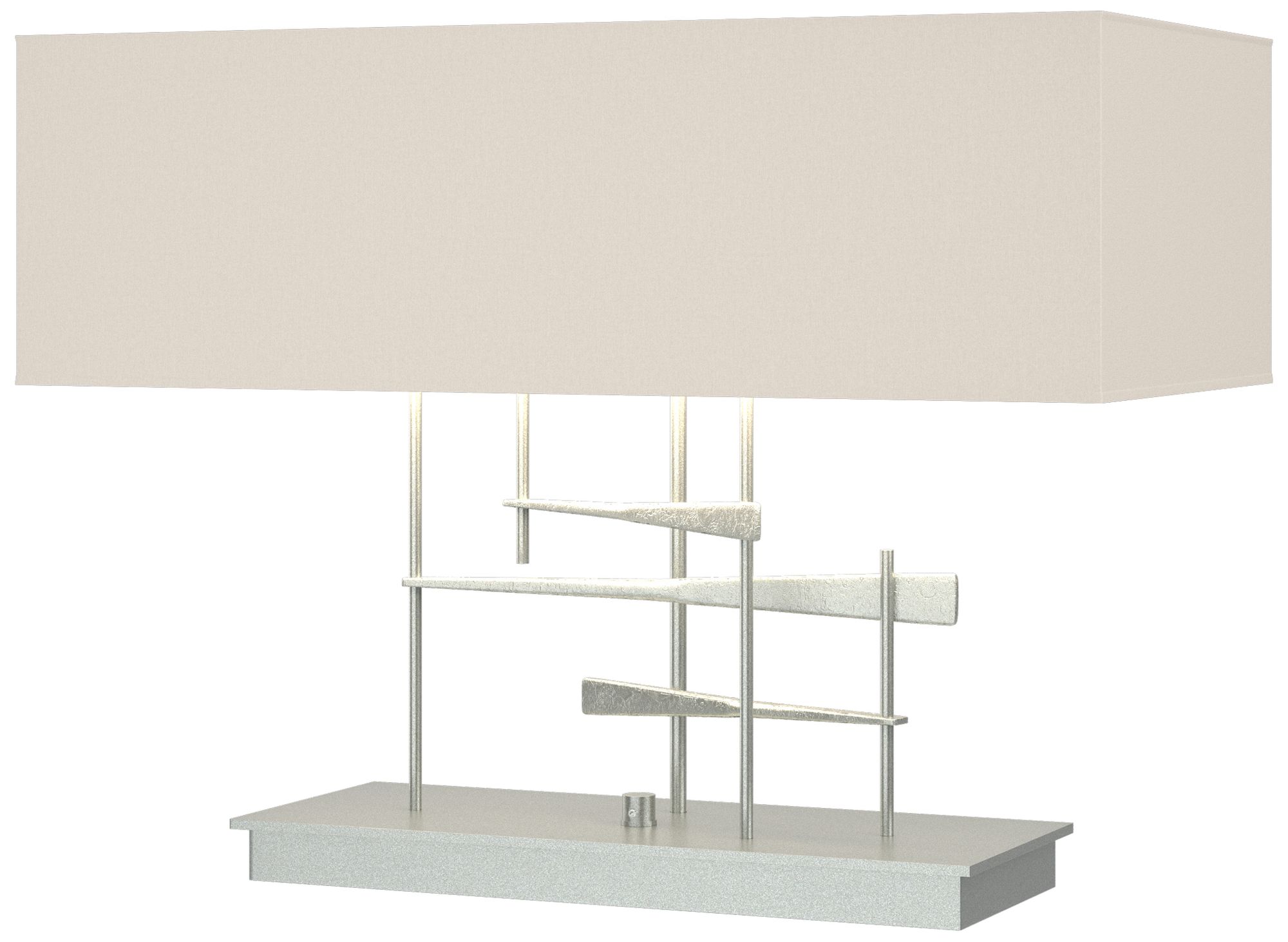 Hubbardton Forge Cavaletti 15 1/4" Flax Shade Vintage Platinum Lamp