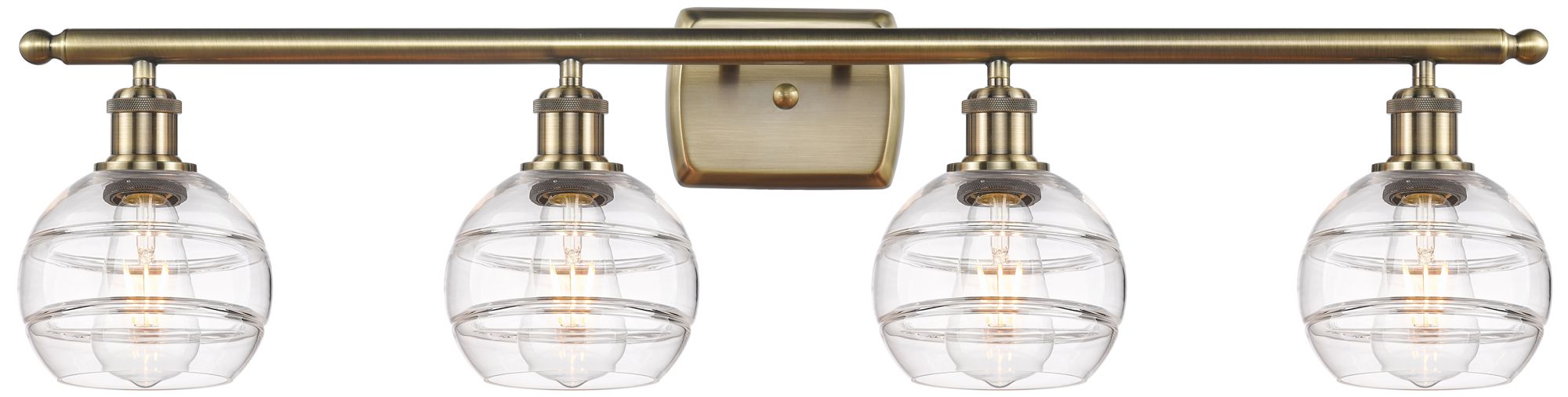 Ballston Rochester 35.88"W 4-Light Antique Brass Bath Light w/ Clear S
