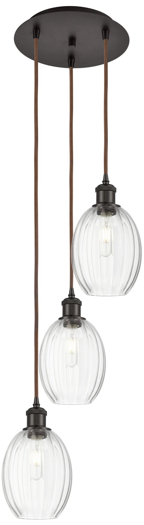 Ballston Preston 13"W 3-Lt Oiled Bronze Cord Pendant w/ Clear Bulb Shade