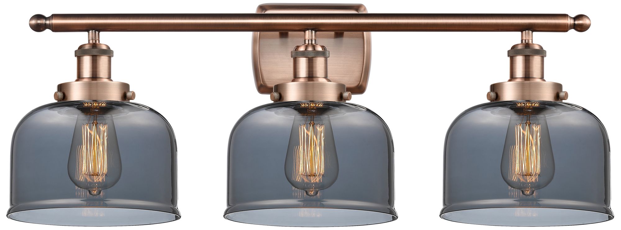 Ballston Urban Bell 28" 3 Light Copper LED Bath Light w/ Smoke Shade