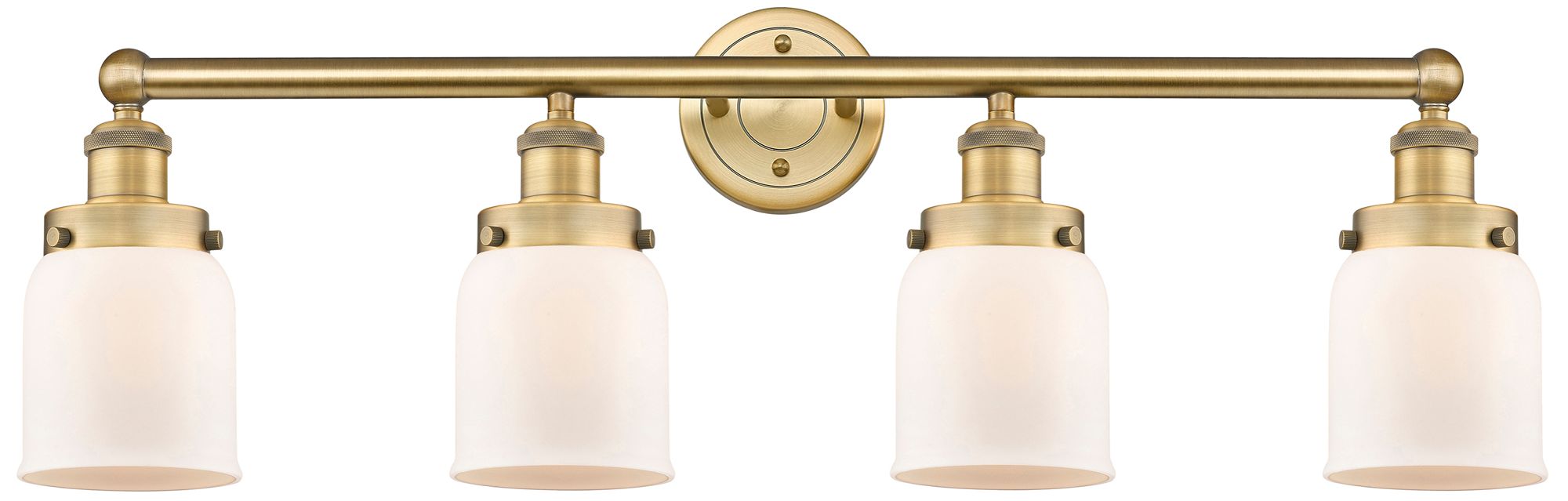 Small Bell 33.5"W 4 Light Brushed Brass Bath Light w/ Matte White Shad