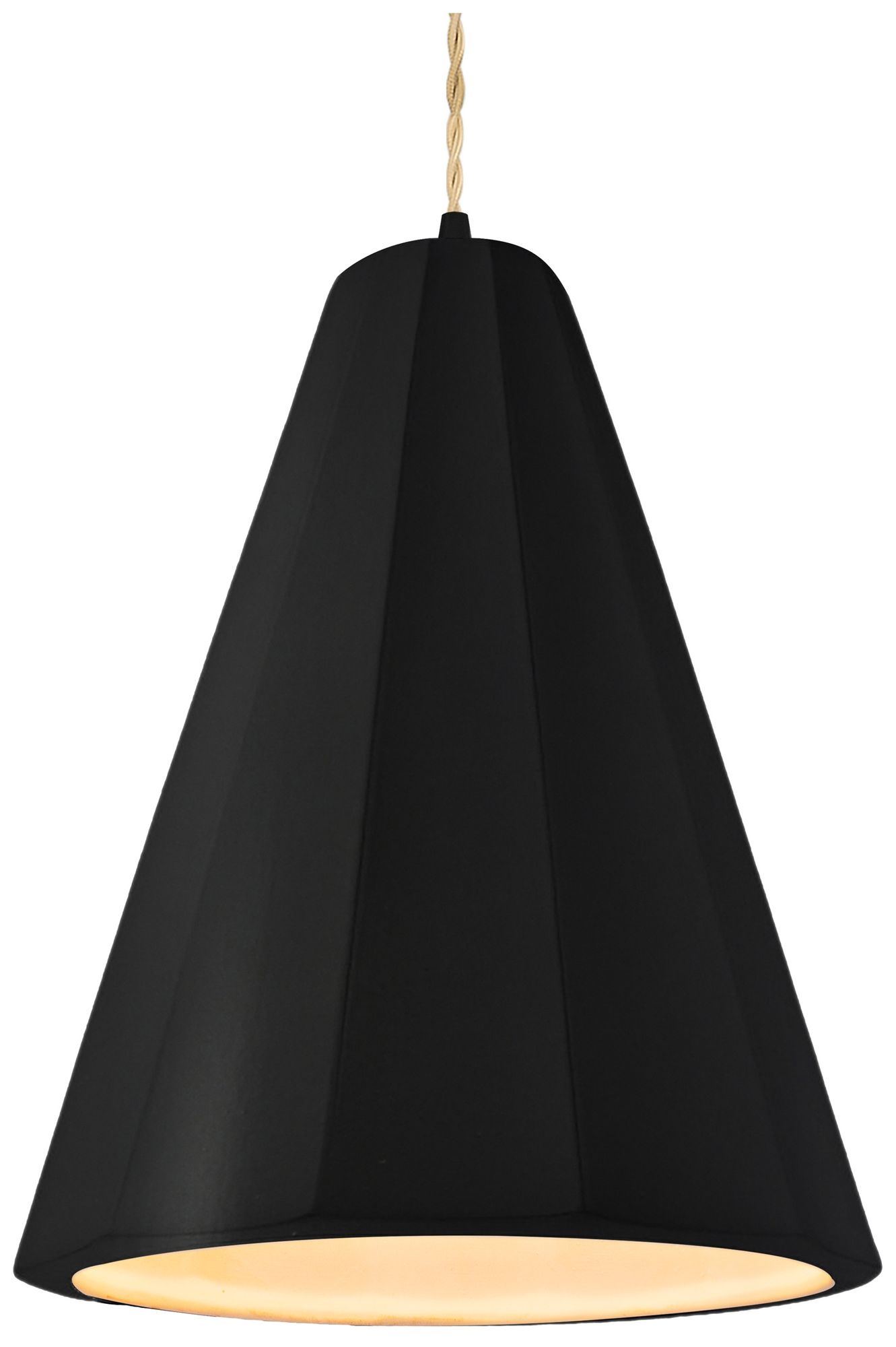Radiance Fluted 9" Wide Matte Black LED Pendant With Beige Twist Cord