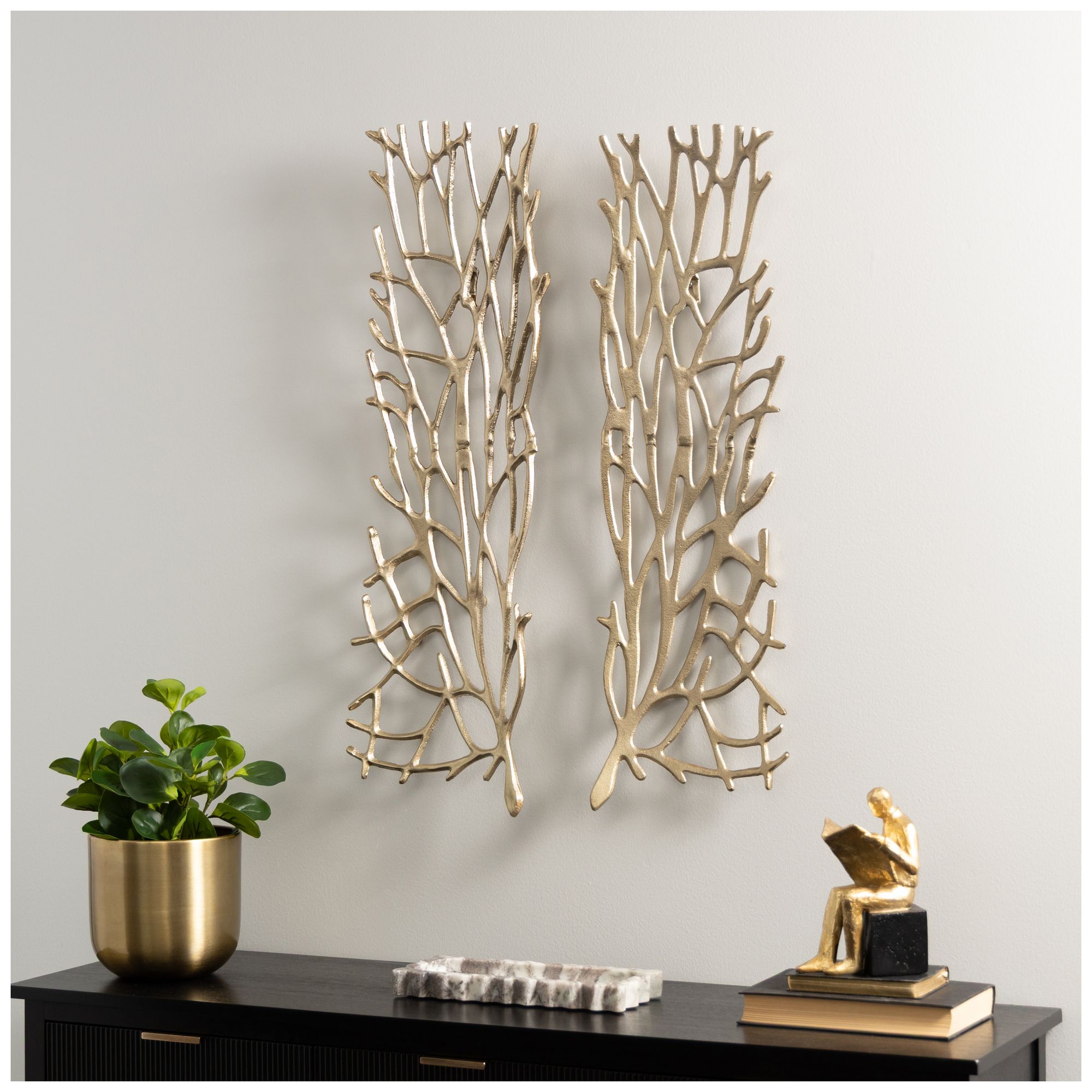 Gold Aluminum Metal Modern Wall Decor, S/2 11"W, 33"H