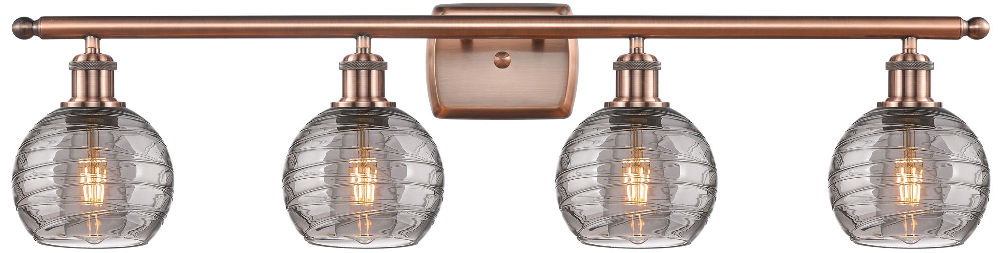 Ballston Athens 35.88"W 4-Light Copper Bath Light w/ Smoke Swirl Shade