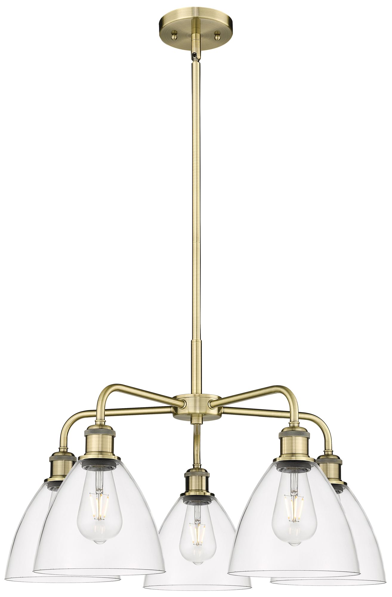 Bristol Glass 25.5"W 5 Light Antique Brass Stem Chandelier w/ Clear Sh