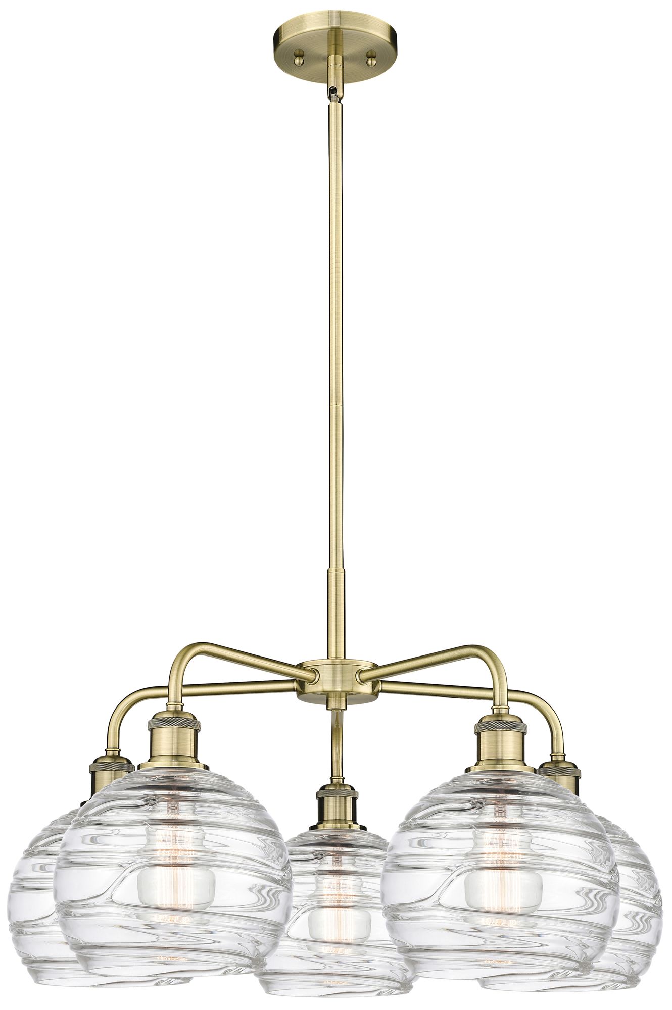 Athens 26"W 5 Light Antique Brass Stem Hung Chandelier w/ Deco Swirl S