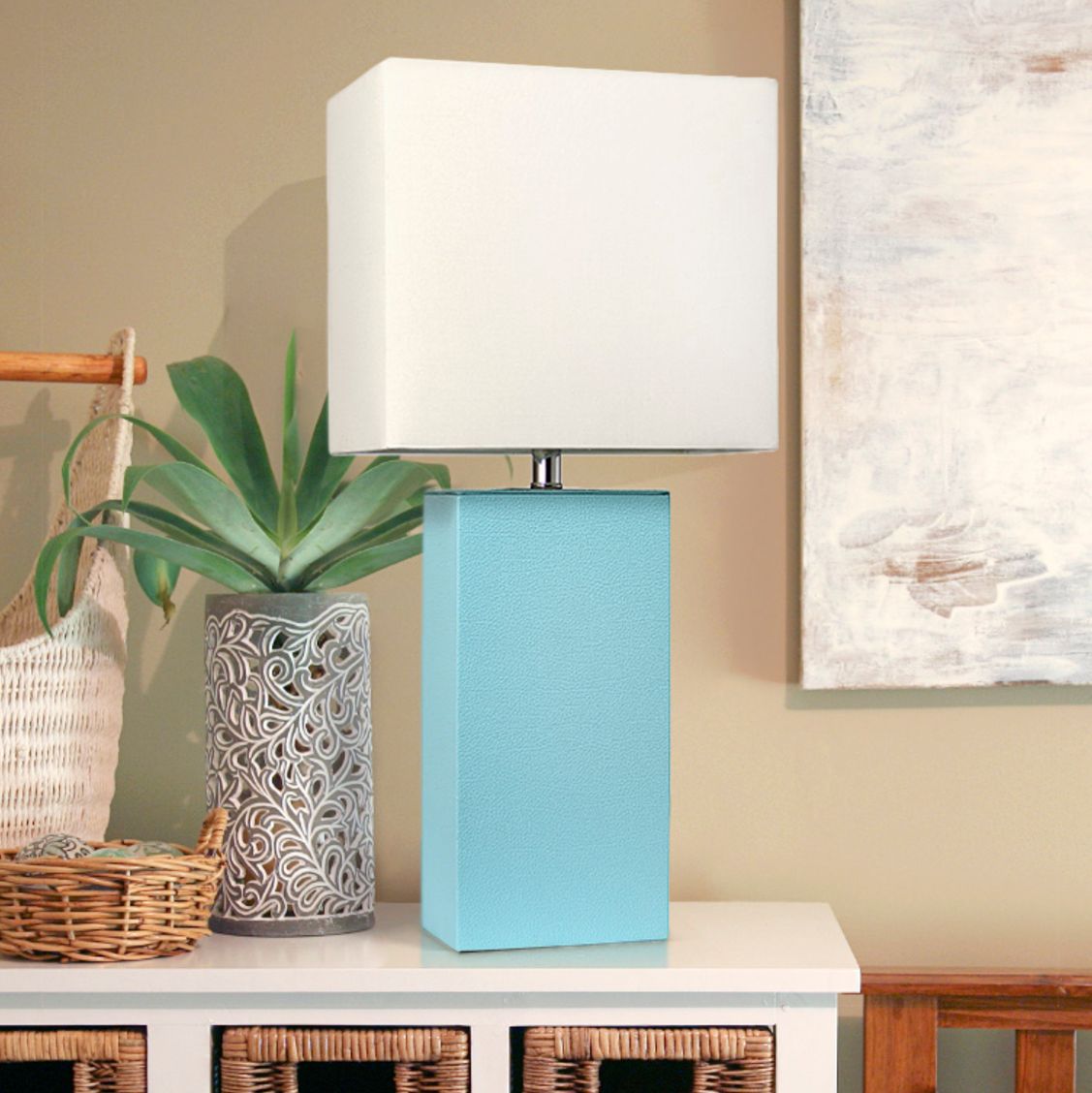 Elegant Designs 21" Modern Coastal Aqua Blue Leather Table Lamp