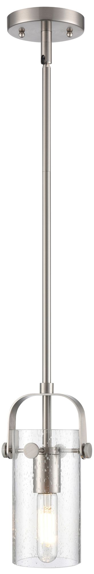 Pilaster II Cylinder 5"W Satin Nickel Stem Hung Pendant With Seedy Sha