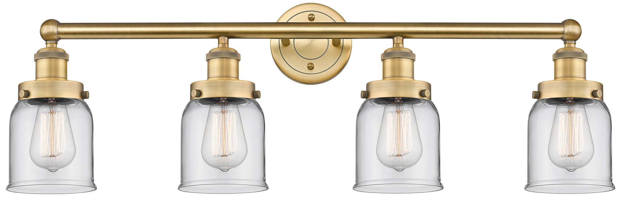 Small Bell 33.5"W 4 Light Brushed Brass Bath Vanity Light w/ Clear Sha