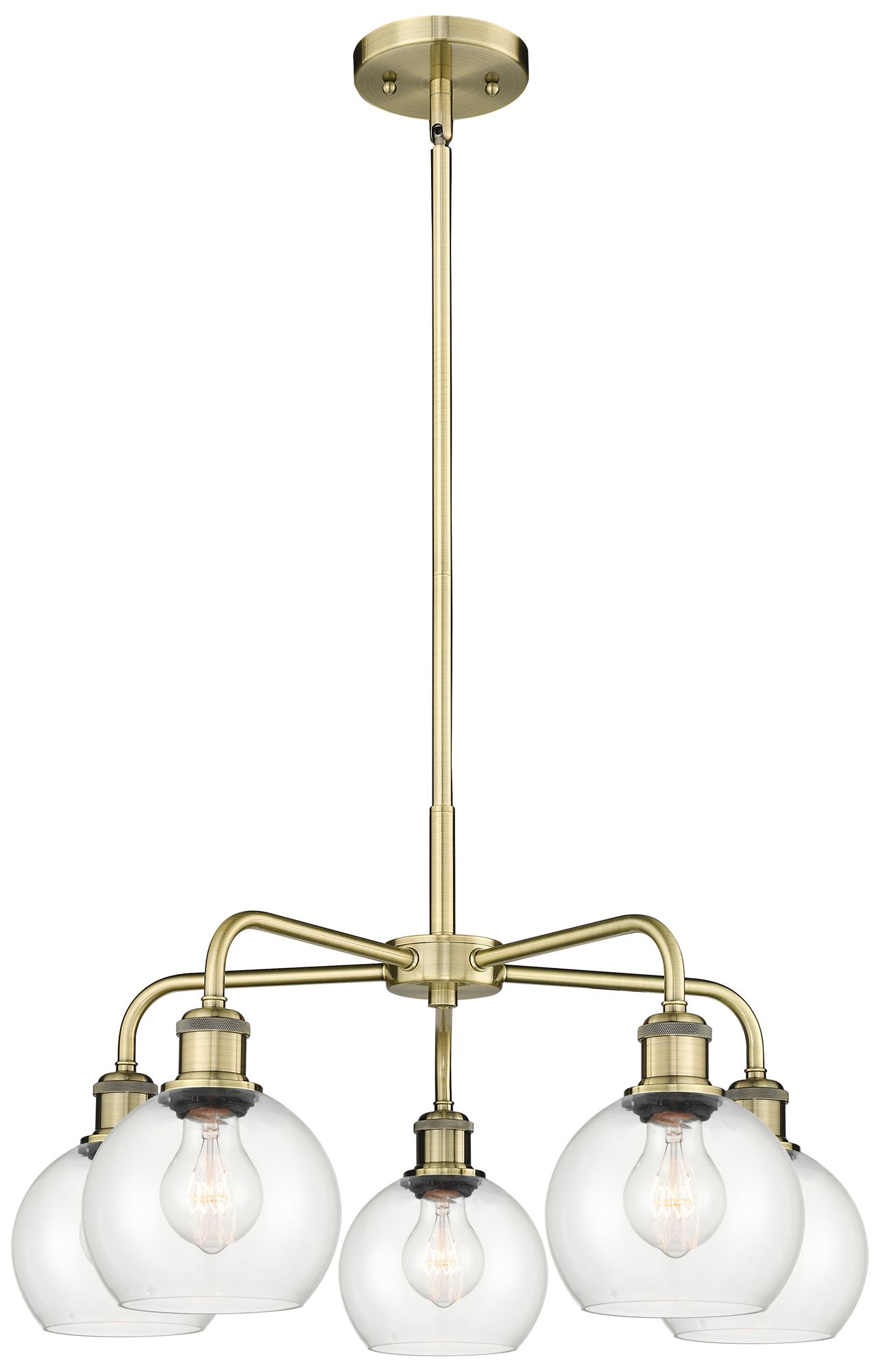Athens 24" Wide 5 Light Antique Brass Stem Hung Chandelier With Clear