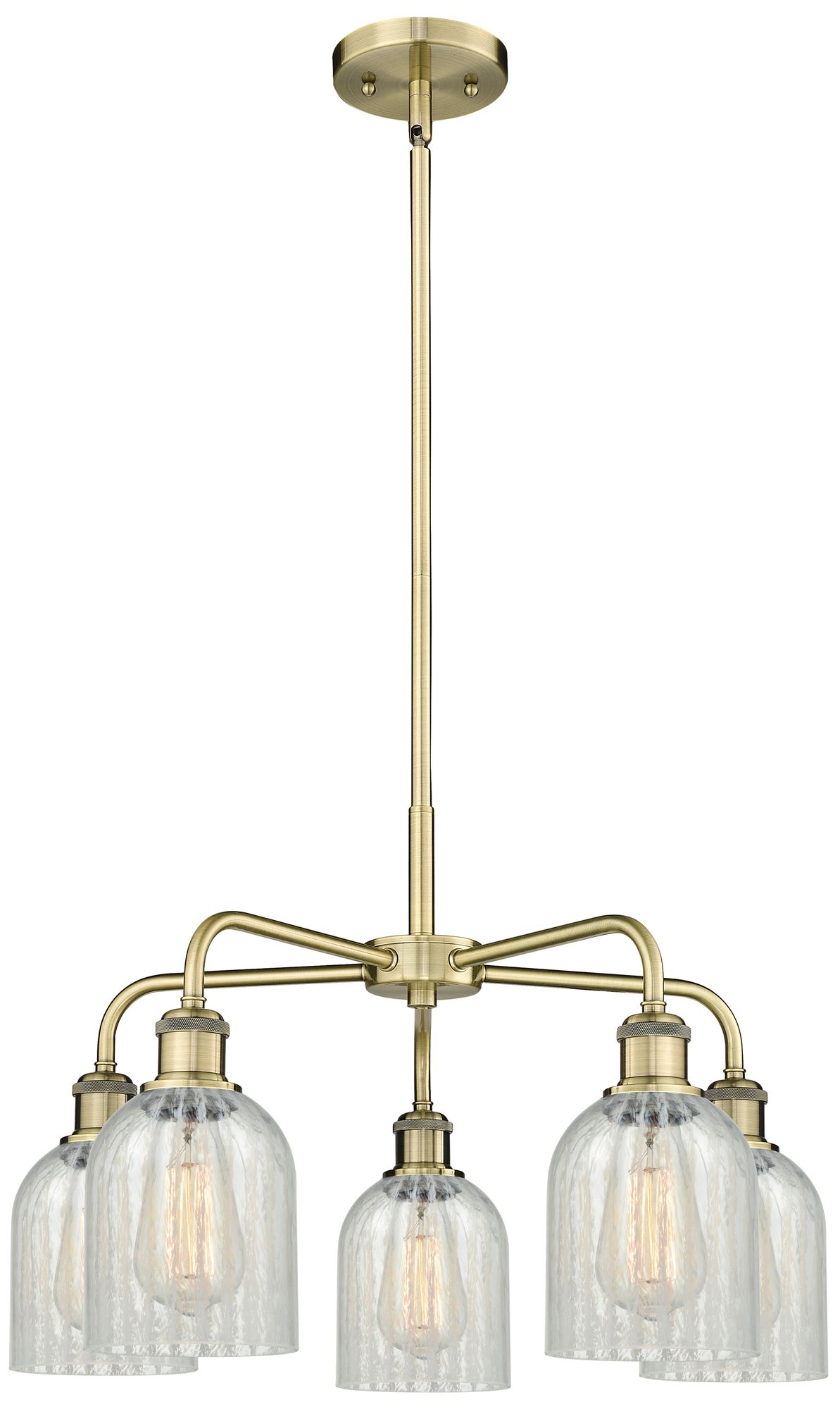 Caledonia 23"W 5 Light Antique Brass Stem Chandelier w/ Mouchette Shad