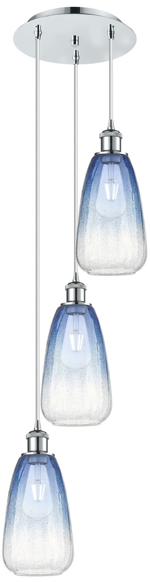 Ballston Brookhaven Almond 13"W 3-Lt Chrome Cord Pendant w/ Sapphire Shade
