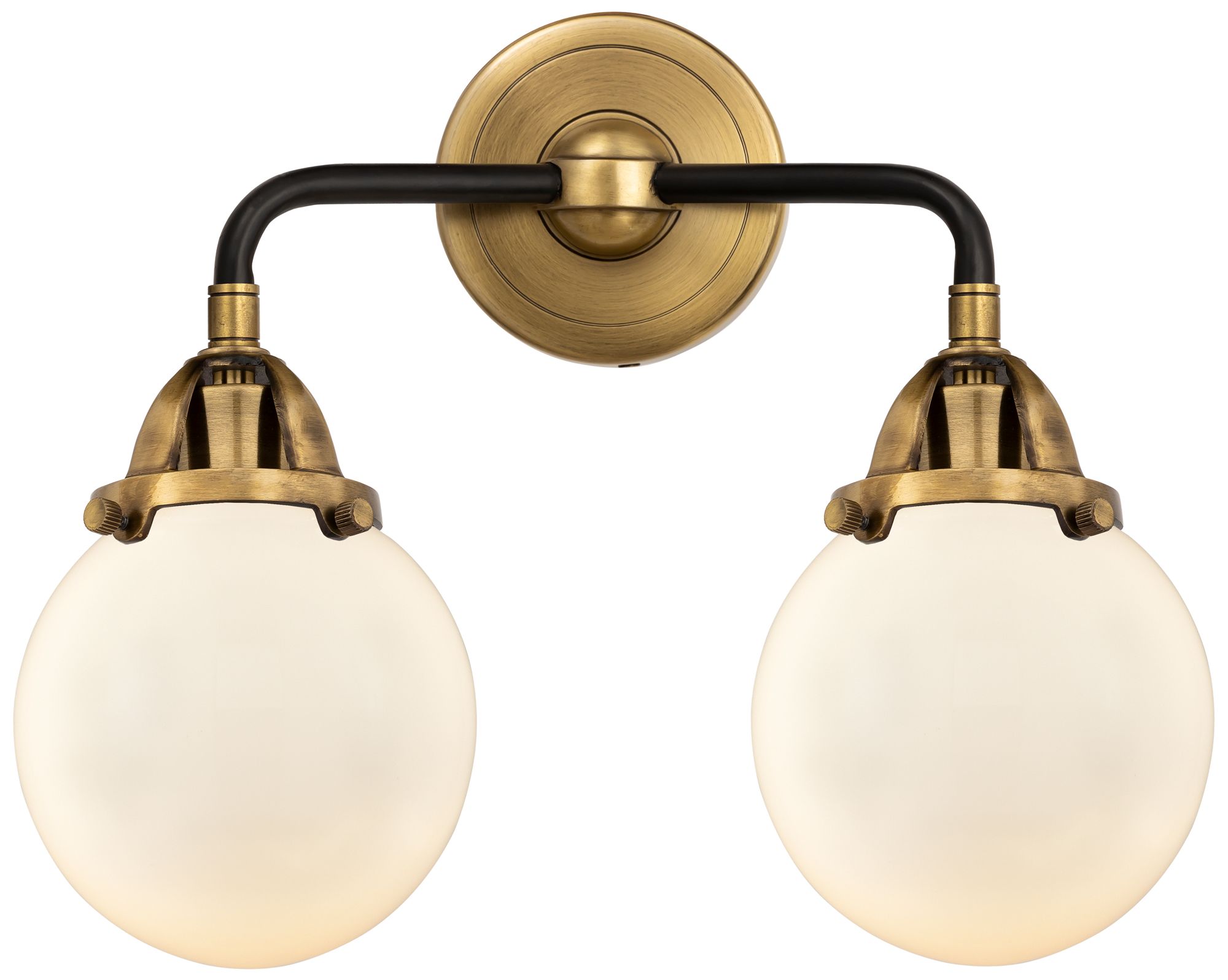 Nouveau 2 Beacon 6" 2 Light 14" Bath Light - Black Brass - White